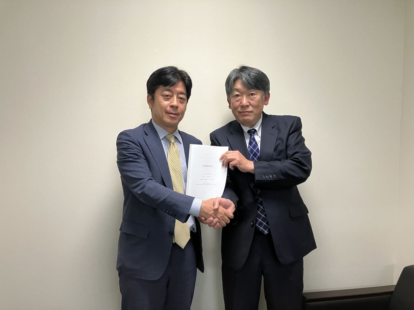 決議後、盛岡に移動し同社を訪問、社員の皆さんへの挨拶と、株式譲渡契約の締結を行いました。