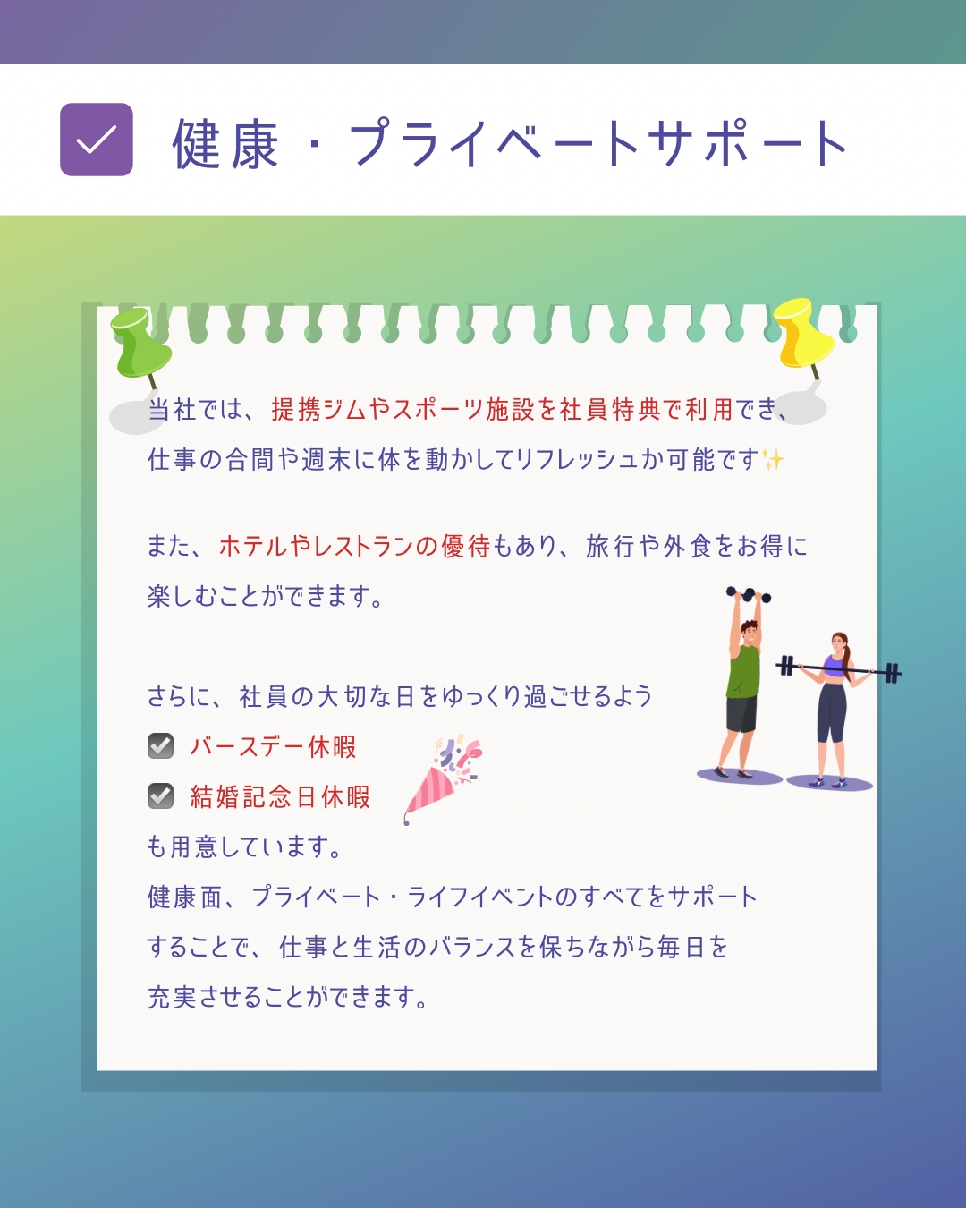 一人ひとりの人生を尊重し、働く時間もプライベートも大切にできる。