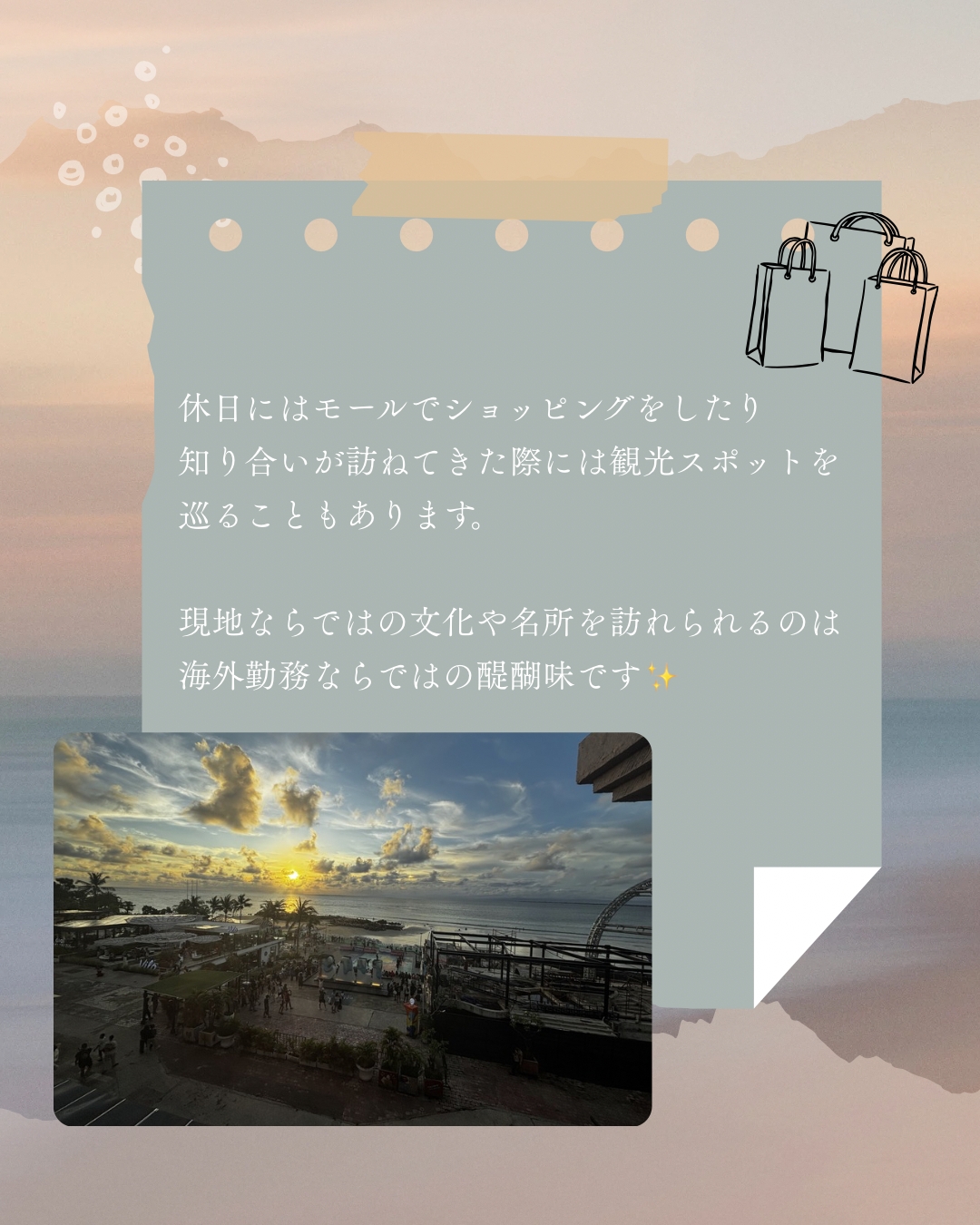 海外拠点で働く日本人社員にとって、休日の過ごし方も海外勤務ならではの楽しみのひとつです。