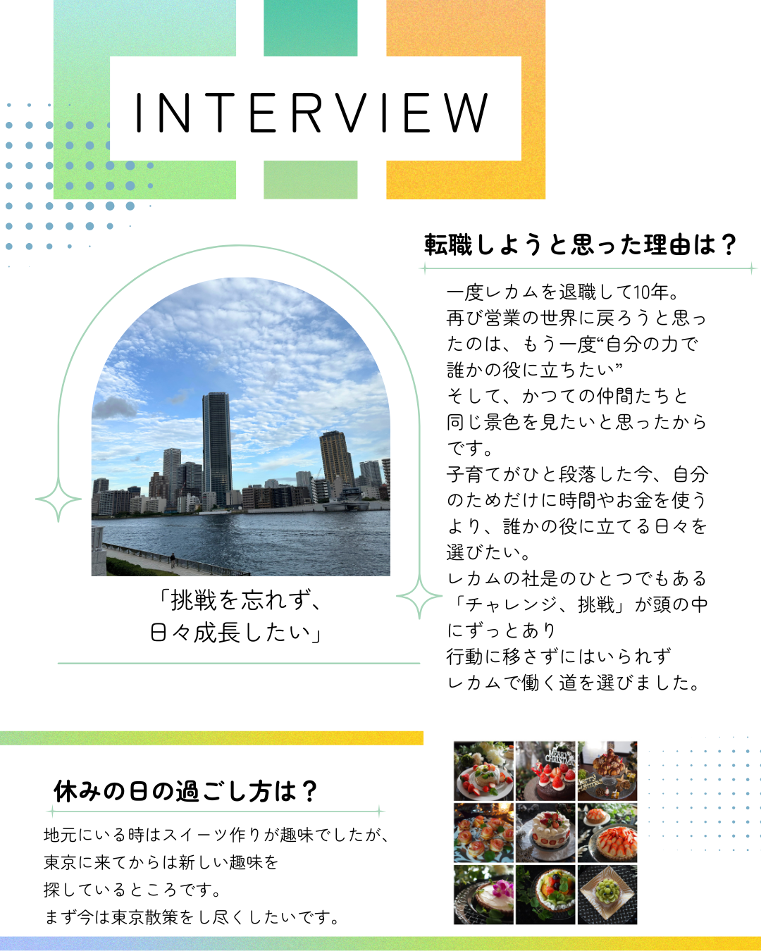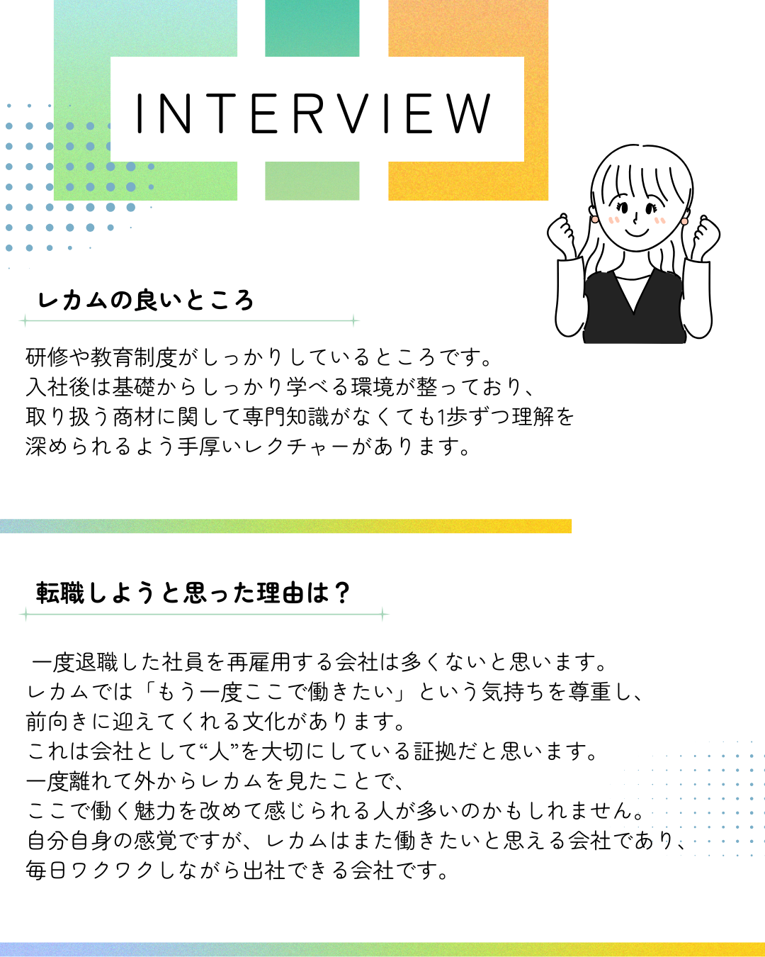 レカムには “もう一度働きたい” と感じられる温かい社風があります。