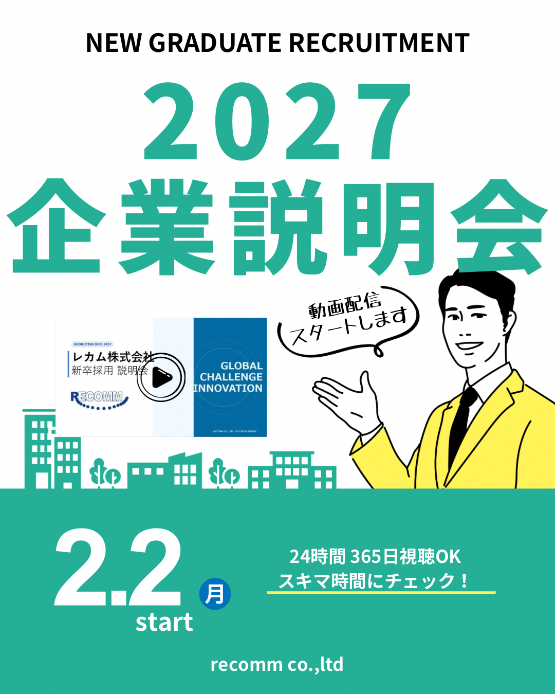 2027年度新卒採用向けの「採用説明会動画」の配信が、2月よりスタートします!