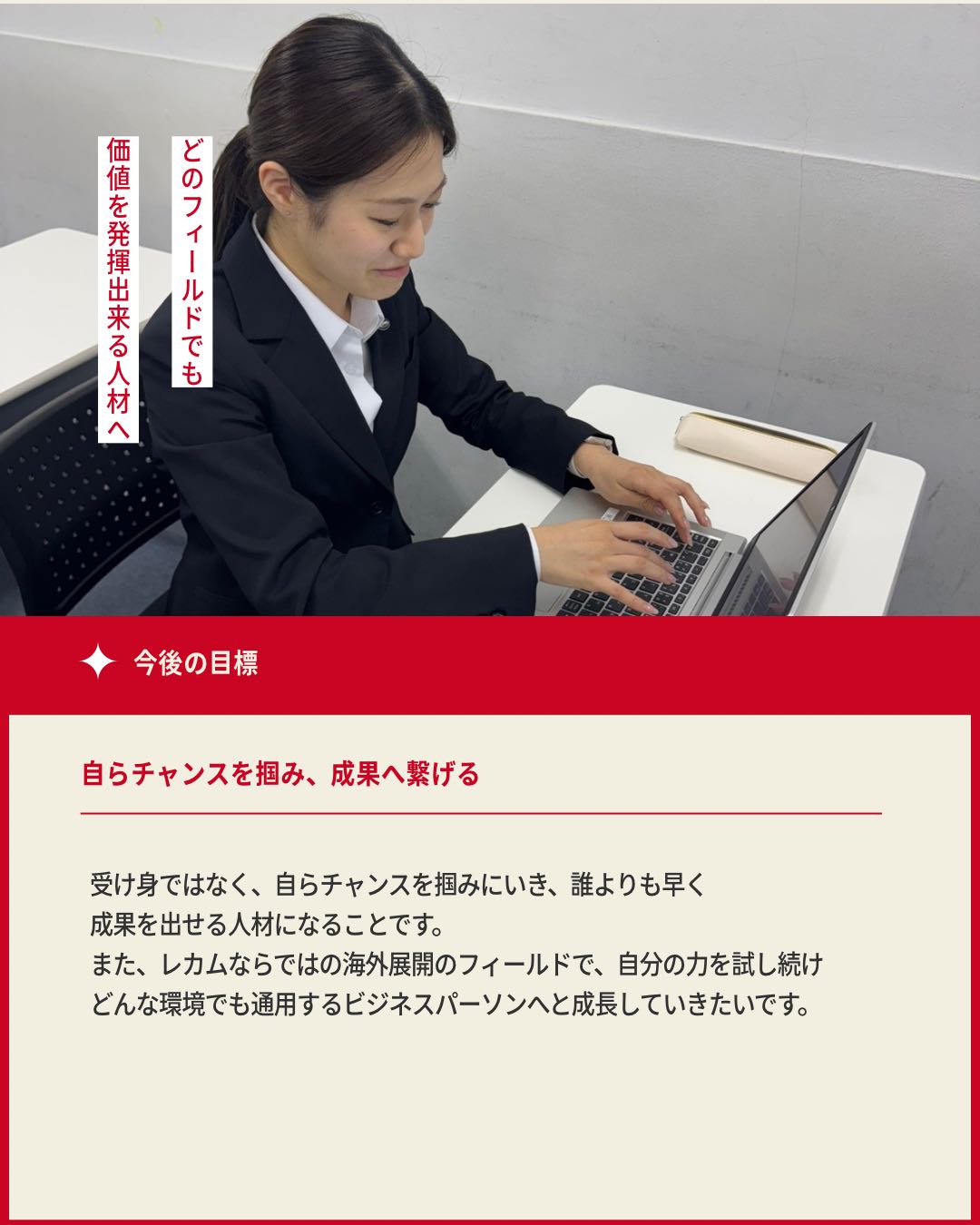 レカムはその想いに本気で向き合い、機会を与えてくれる環境です。